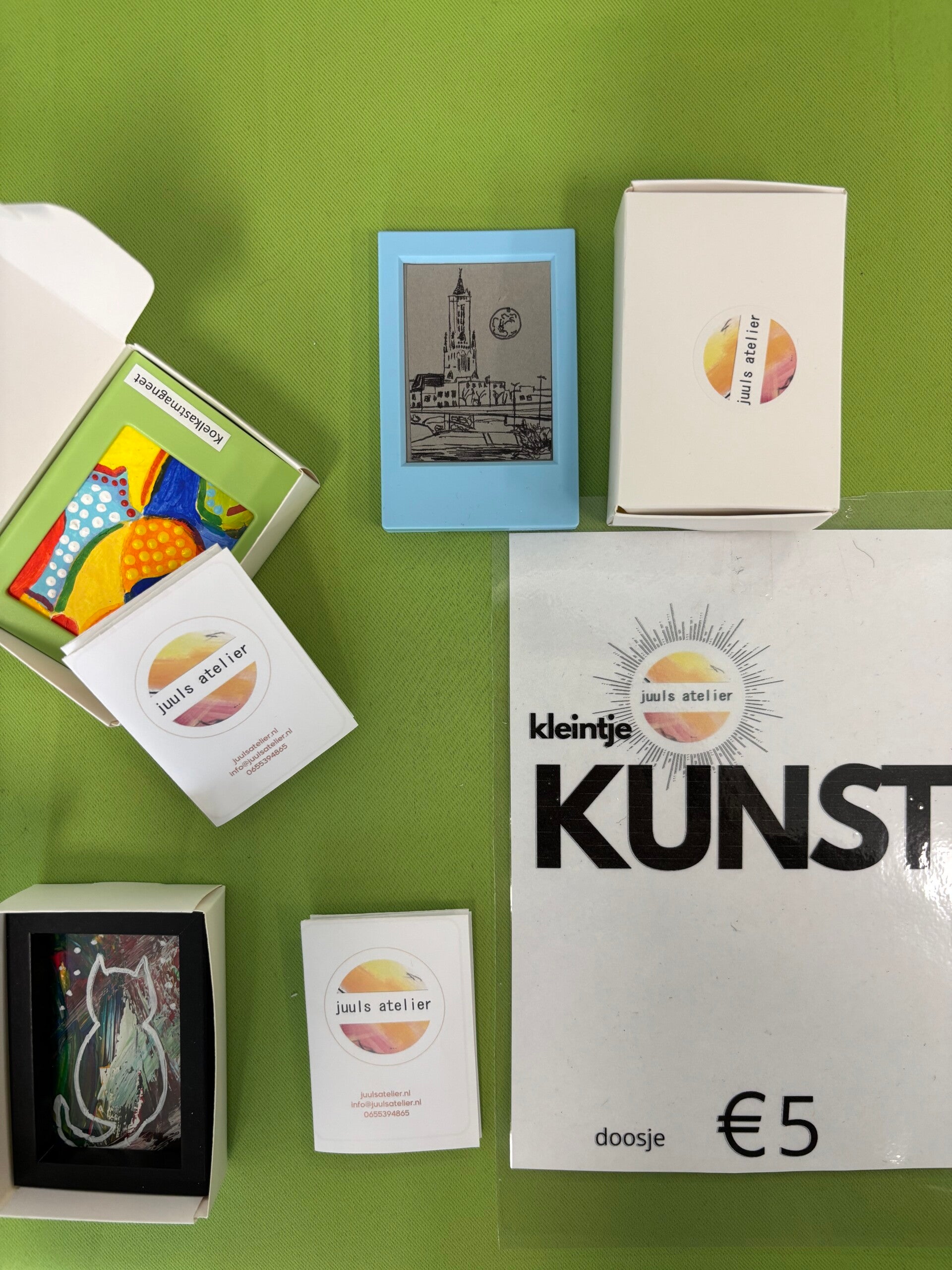 Kleintje kunst! In elk doosje een uniek kunstwerk als verrassing.